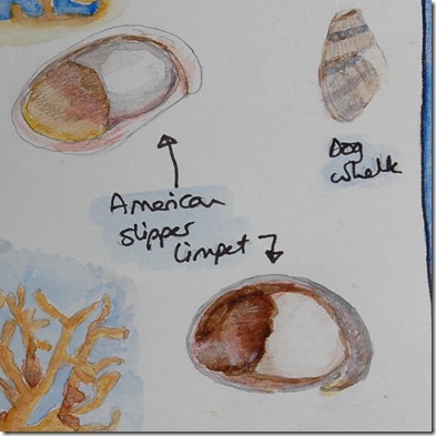 I am not an artist, and never really tried to sketch or paint, so was really thrilled with my watercolours of the shells! I found an old watercolour set and some water brushes, and picked one of (the many) watercolour paper books I have, and now I’m hooked! I want to learn about painting and sketching. I love the way it makes me really study things. I love trying to make the right shapes and colours. I love trying to capture the way the light falls on things. Gosh I have a lot to learn!